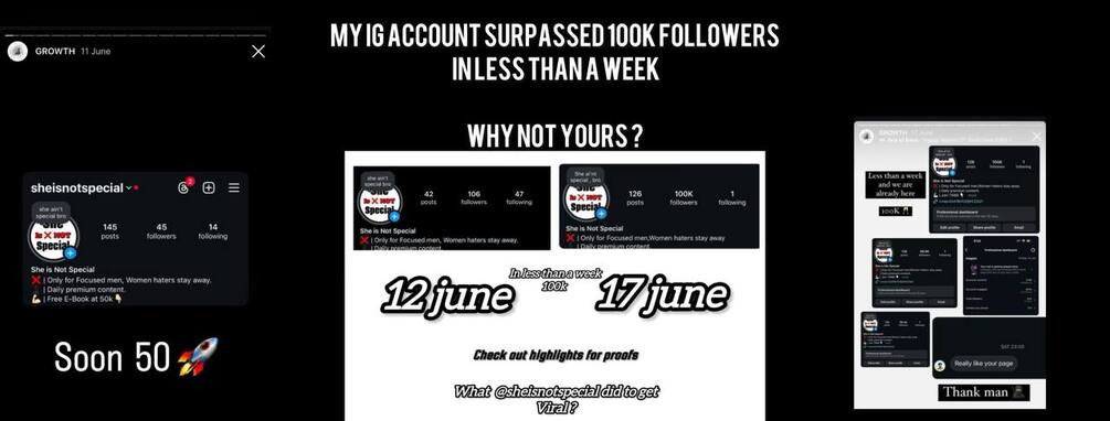 My IG Account surpassed 100,000 followers in less than a week and started generating consistent income in less than a months.